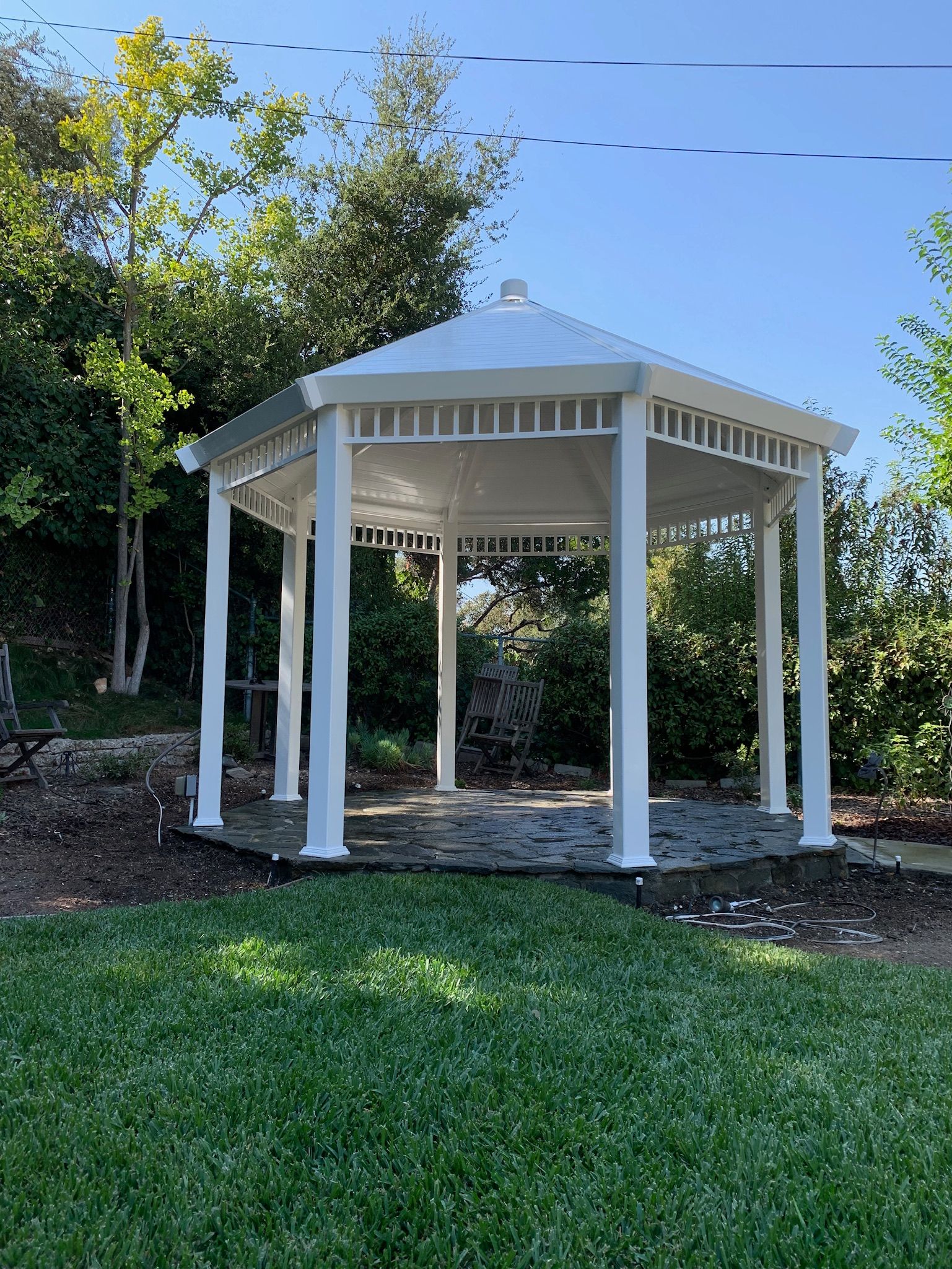 A vinyl gazebo is a structure made primarily of vinyl material, designed to provide a sheltered outdoor space for relaxation, entertainment, or various activities.